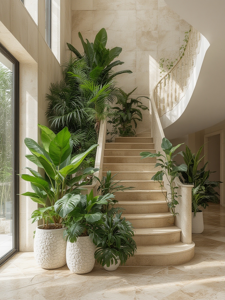 - Plant Stands: Use tiered metal or wooden stands to vary heights, allowing light to reach lower leaves.