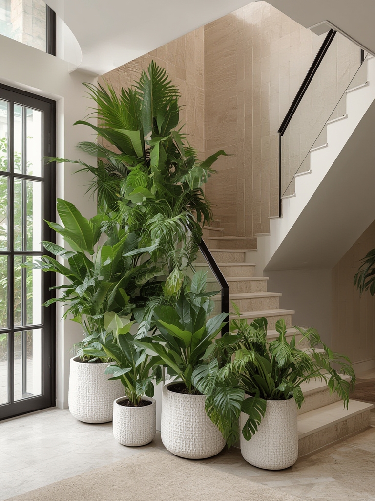 Imagine a bright corner in your living room: a sleek white pot with a Spider Plant, a matte black pot holding a Snake Plant, and a decorative ceramic bowl with a Boston Fern on a side table. Add a hanging basket of trailing pothos (another excellent air filter) near the window. This arrangement not only creates visual interest but also maximizes pollutant removal across the room.