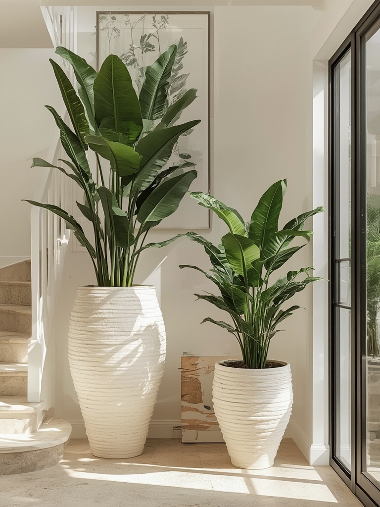 Combine glossy‑leafed plants (e.g., rubber plant) with feathery foliage (e.g., Boston fern) for a tactile contrast that feels dynamic and curated.